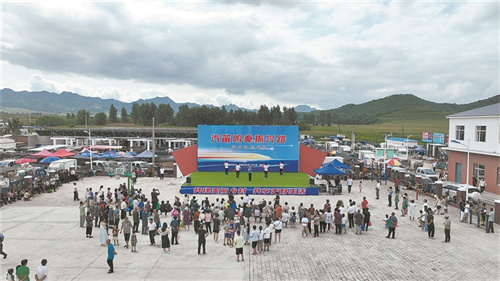 中國(guó)鐵路沈陽(yáng)局集團(tuán)有限公司文聯(lián)文藝骨干在尤杖子村火車頭文化廣場(chǎng)為村民表演歌舞。張雪 攝